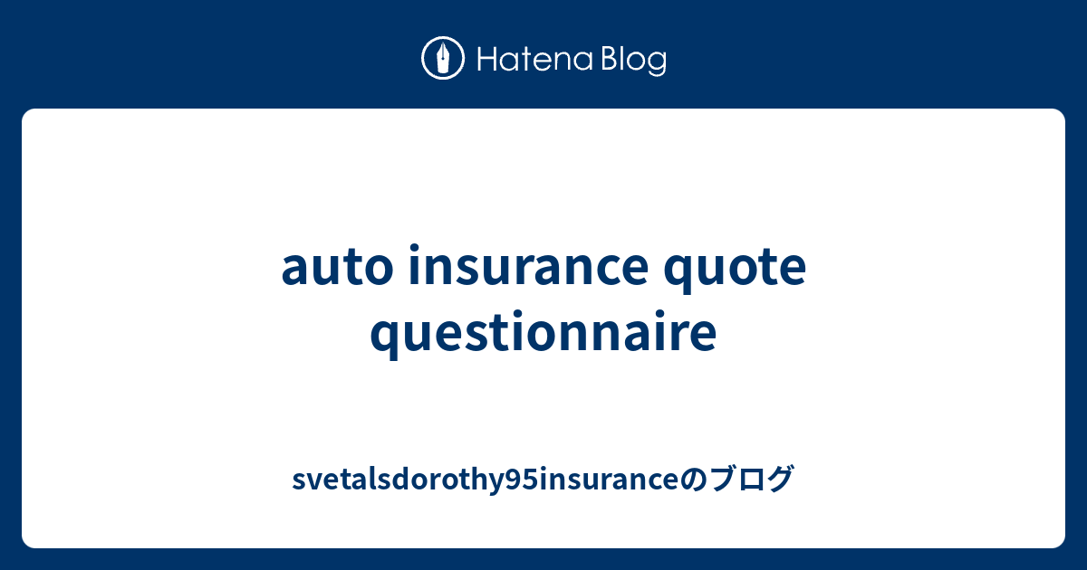 Auto Insurance Quote Questionnaire Svetalsdorothy95insuranceのブログ