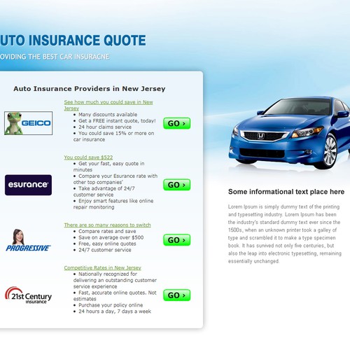 Auto Insurance Landing Page Wanted Web Page Design Contest 99designs