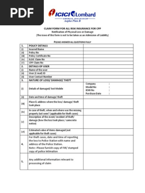 Claim Form For Cpp Pdf Theft Insurance