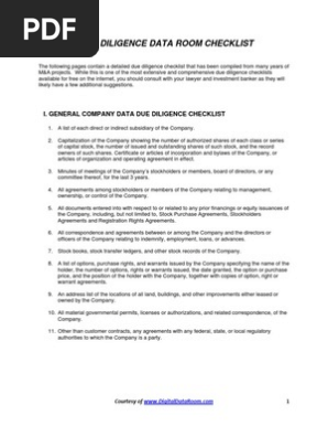 Due Diligence Data Room Checklist Due Diligence Data Room Checklist Pdf Pdf4pro
