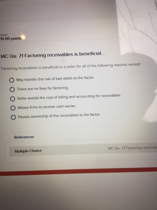 Factoring Receivables Is Beneficial To A Seller For All Of The Following Reasons Except