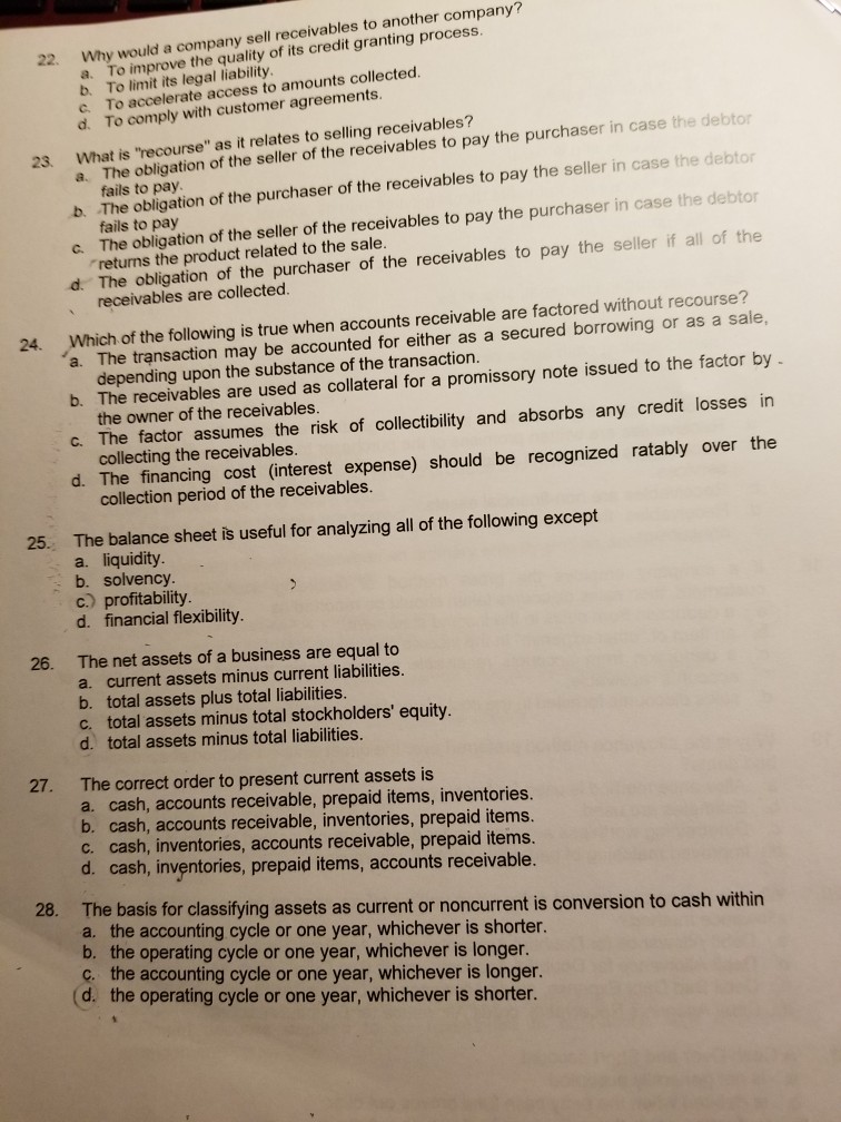 Solved 22 W Hy Would A Company Sell Receivables To Anoth Chegg Com