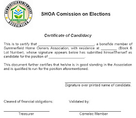 Summerfield Homes Homeowners Association Inc Certificate Of Candidacy
