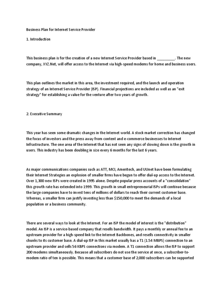 Internet Service Provider Business Plan Pdf