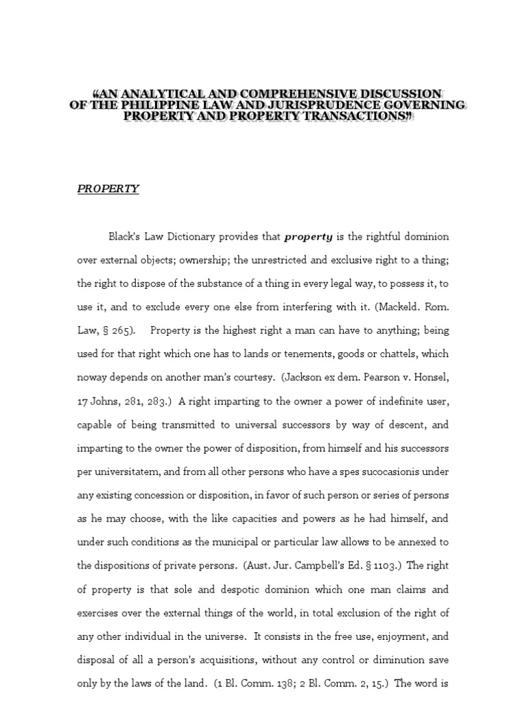An Analytical And Comprehensive Discussion Of The Philippine Law And Jurisprudence Governing Property And Property Transactions Ownership Property Free 30 Day Trial Scribd