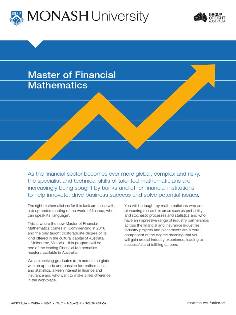Master of banking and finance monash handbook. Unsw has a investment banking specialisation in their 1 year master of finance. Master of banking and finance b6004 postgraduate course business and economics monash university. Designed for people who have limited prior knowledge in finance and are looking to enter the industry the course is ideal if you want to build strong skills in banking and finance develop your knowledge of financial institutional issues and gain practical experience in. The master of banking and finance will help you break into the banking or finance industry even if you are new to it.