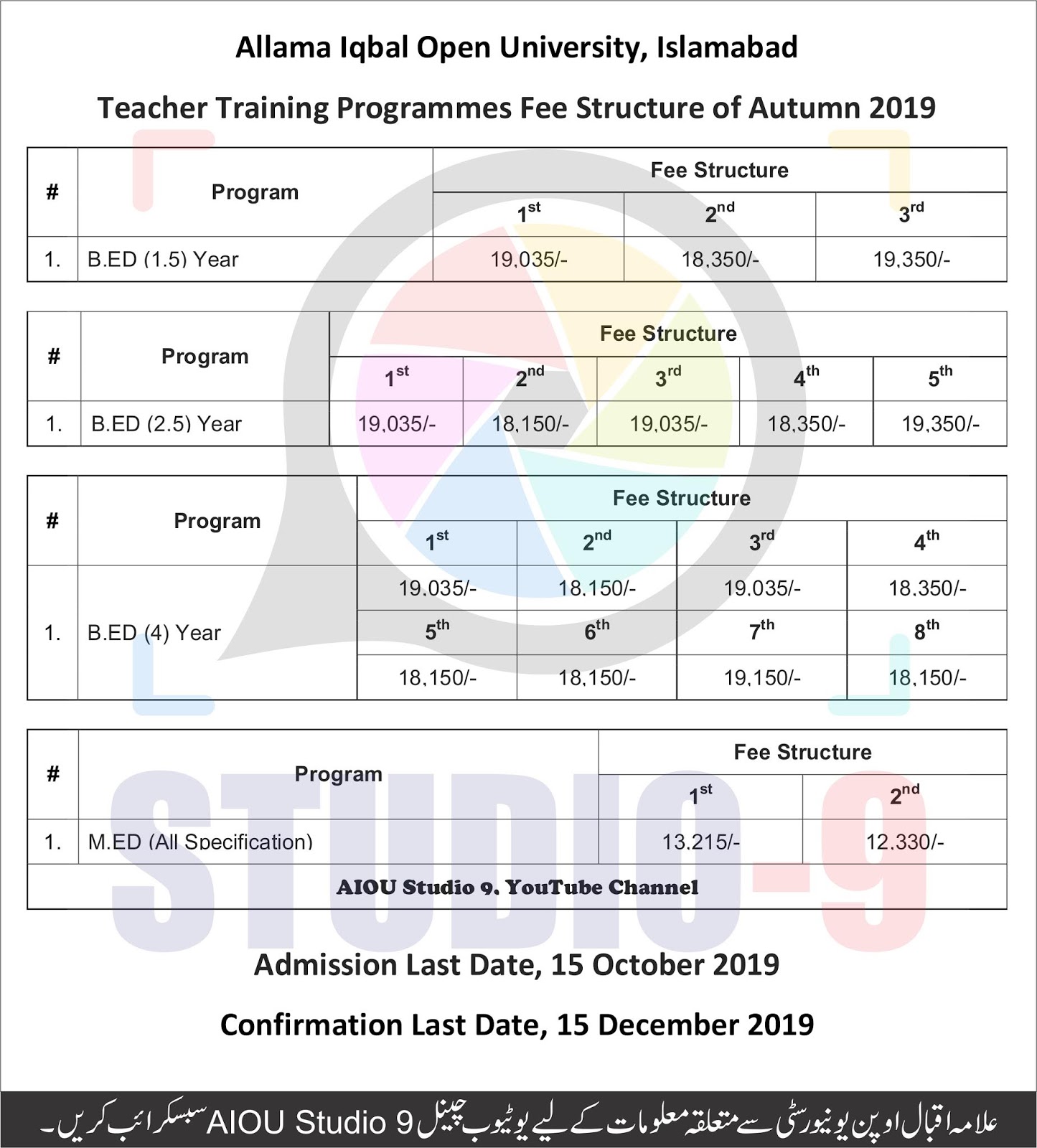 Aiou Ba Fee Structure 2019