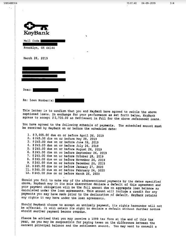 Debt Settlement Letter With State Farm Bank Client Saved 50