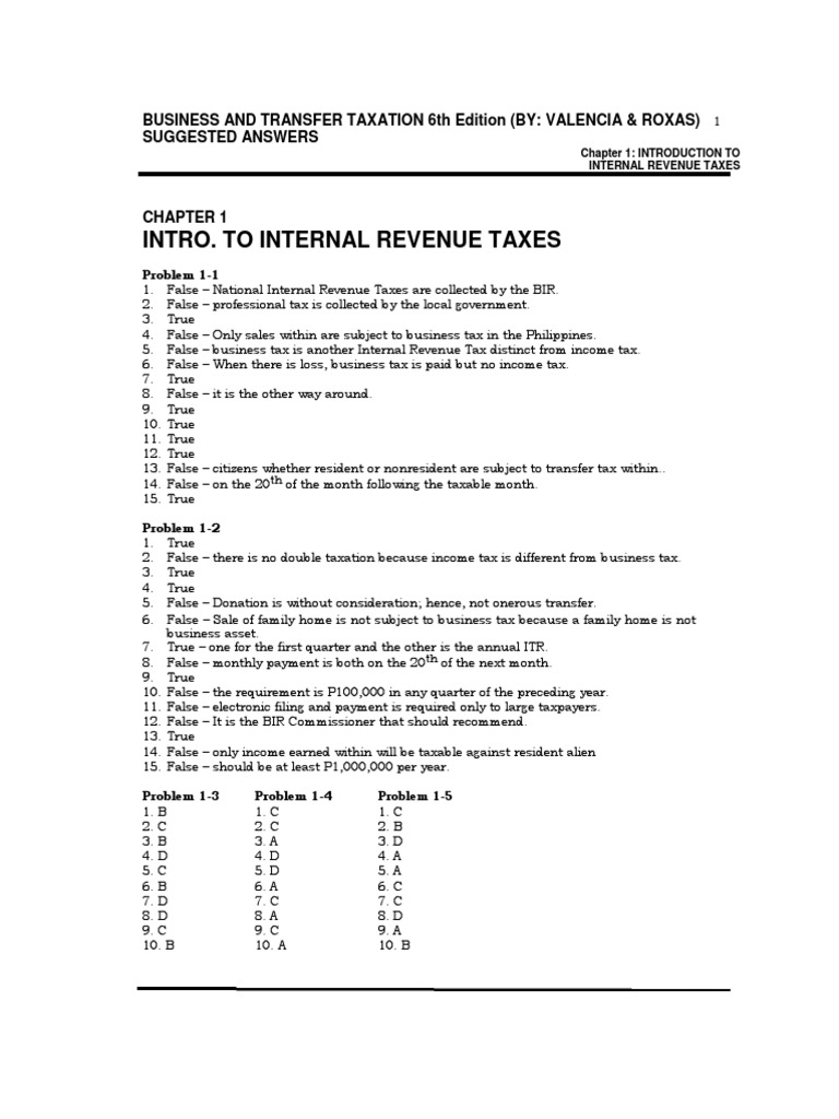 Business And Transfer Taxation By Valencia And Roxas Solution Manual Corporate Tax Income Tax